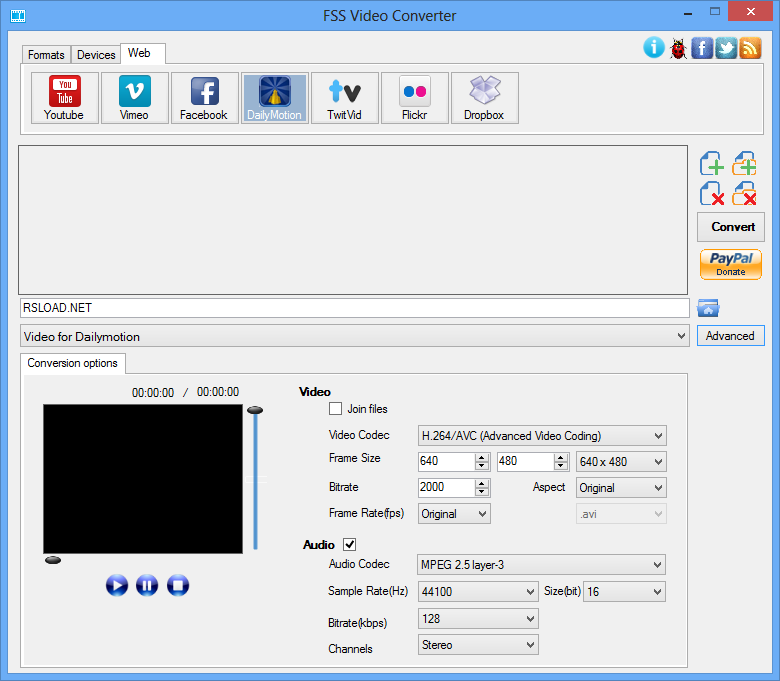 - Возможность ручной настройки кодеков, битрейта и частоты кадров