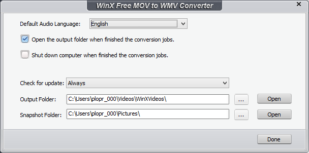 Работа с WinX Free MOV to WMV Converter