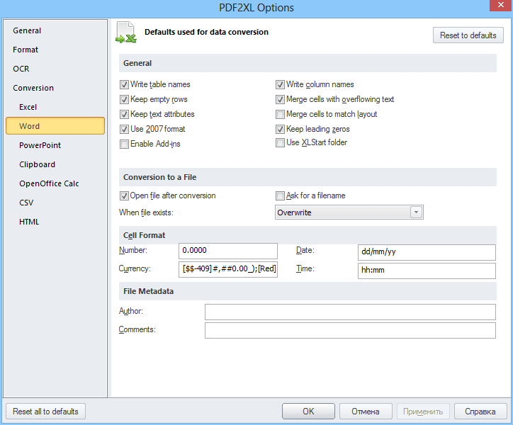 - Поддержка конвертации многостраничных PDF-документов в формат Excel