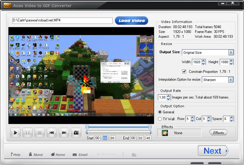 Работа с Aoao Video to GIF Converter