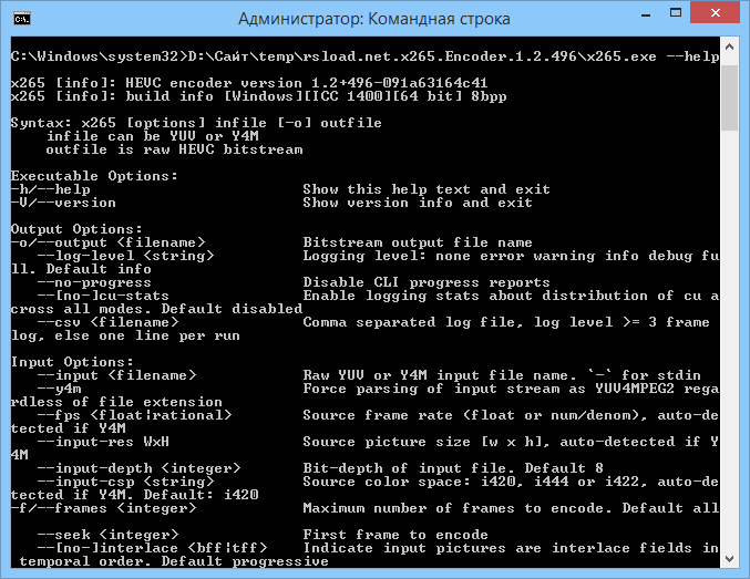 Работа с x265 Encoder