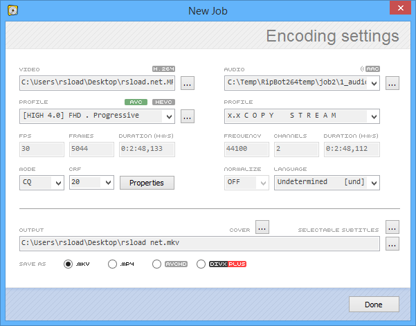 Для начала работы с RipBot264 необходимо указать путь к исходному видеофайлу, после чего программа автоматически анализирует его структуру и отображает доступные аудио- и видеодорожки. Далее пользователь может настроить параметры вывода: выбрать нужную аудиодорожку, задать целевое разрешение, изменить частоту кадров, установить битрейт. В окне предпросмотра изображения доступны функции обрезки, изменения соотношения сторон, коррекции чересстрочности. После настройки выходной папки и формата контейнера (обычно MP4 или MKV) можно запускать процесс кодирования, который проходит в несколько этапов — анализ, кодирование и мультиплексирование. Программа отображает ход выполнения, оставшееся время и текущие параметры потока.