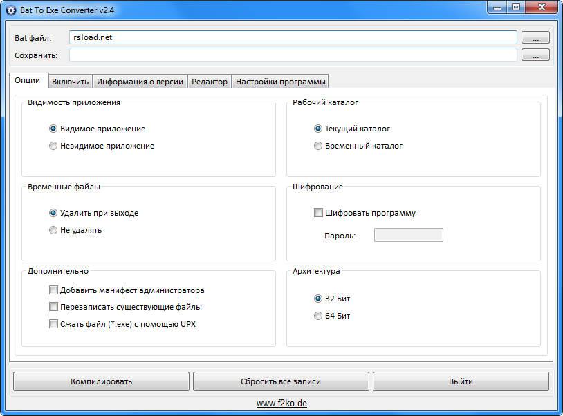 Bat To Exe Converter 3.2 — это компактный инструмент для преобразования BAT-файлов в исполняемые EXE-файлы с дополнительными настройками безопасности, сжатия и интеграции. Утилита поддерживает русский язык интерфейса и поставляется в виде установочной и портативной версии, что делает её удобной для использования на разных компьютерах без необходимости установки. Программа занимает менее 4 МБ, совместима с современными версиями Windows и работает под лицензией FreeWare.