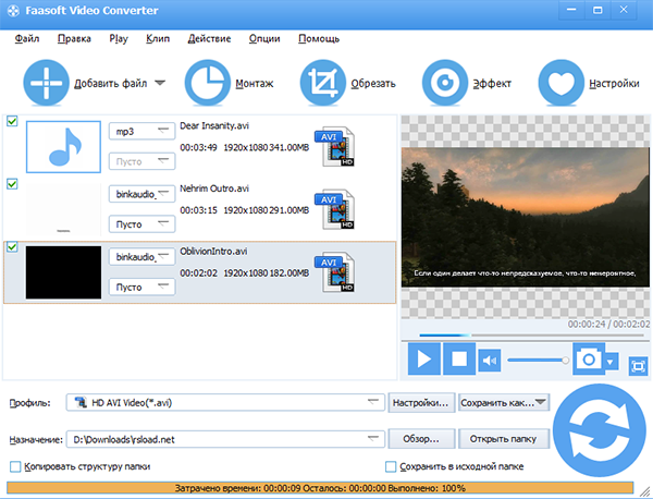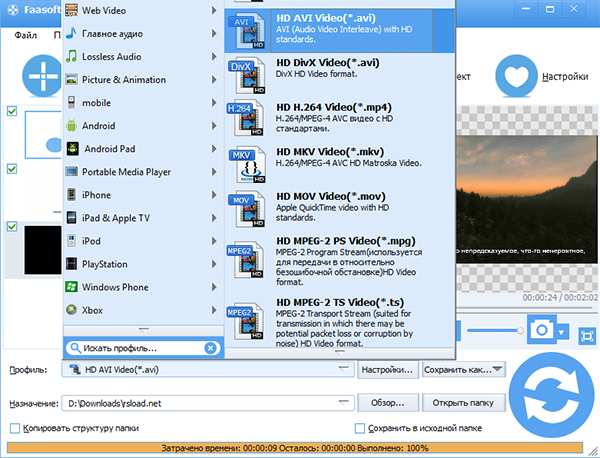 Работа с Faasoft Video Converter