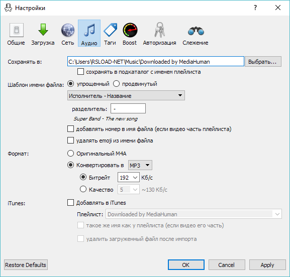 - Возможность выбора качества аудио без потери оригинального битрейта