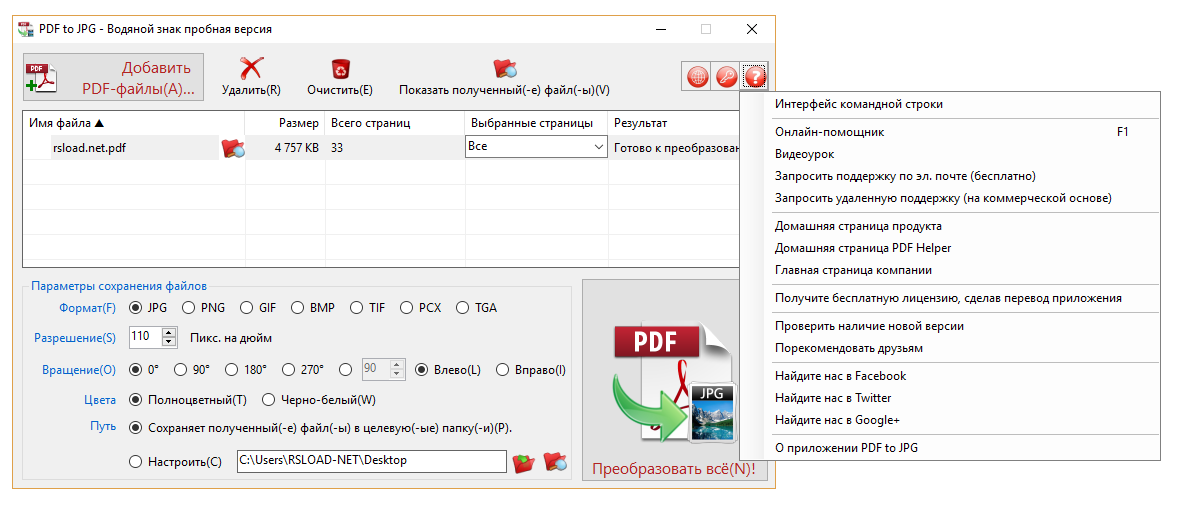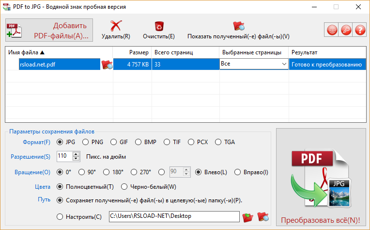 TriSun PDF to JPG 20.0 Build 081 – компактное приложение для преобразования PDF-документов в графические форматы, включая JPG, PNG, GIF и другие. Программа поддерживает пакетную обработку, настройку разрешения, поворот страниц и монохромное преобразование. Простой интерфейс и русский язык делают её доступной даже для начинающих пользователей.