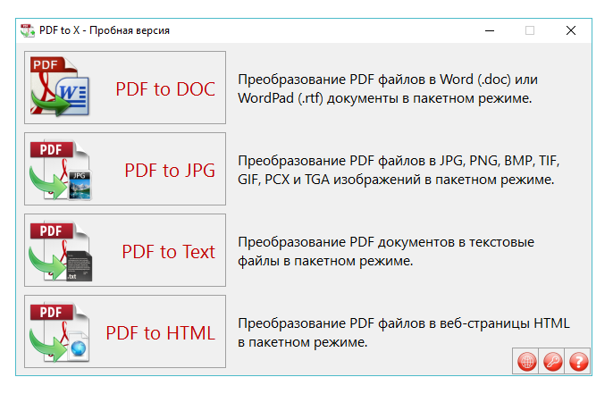 TriSun PDF to X представляет собой многофункциональное решение для обработки PDF-файлов, разработанное компанией TriSun Software Limited. Программное обеспечение позволяет конвертировать документы из PDF в такие форматы, как TXT, DOC, HTML, а также в популярные графические форматы, включая JPEG, PNG, BMP и другие. Инструмент совмещает в себе функции нескольких утилит, что делает его незаменимым при работе с разнородными типами файлов. Поддержка портативной версии даёт возможность запускать конвертер без установки, что особенно удобно при использовании с флеш-накопителей. Пользовательский интерфейс интуитивно понятен, все настройки расположены логично, а русская локализация помогает быстро разобраться в функционале. Конвертировать можно как целиком весь документ, так и отдельные страницы, задавая нужный диапазон.