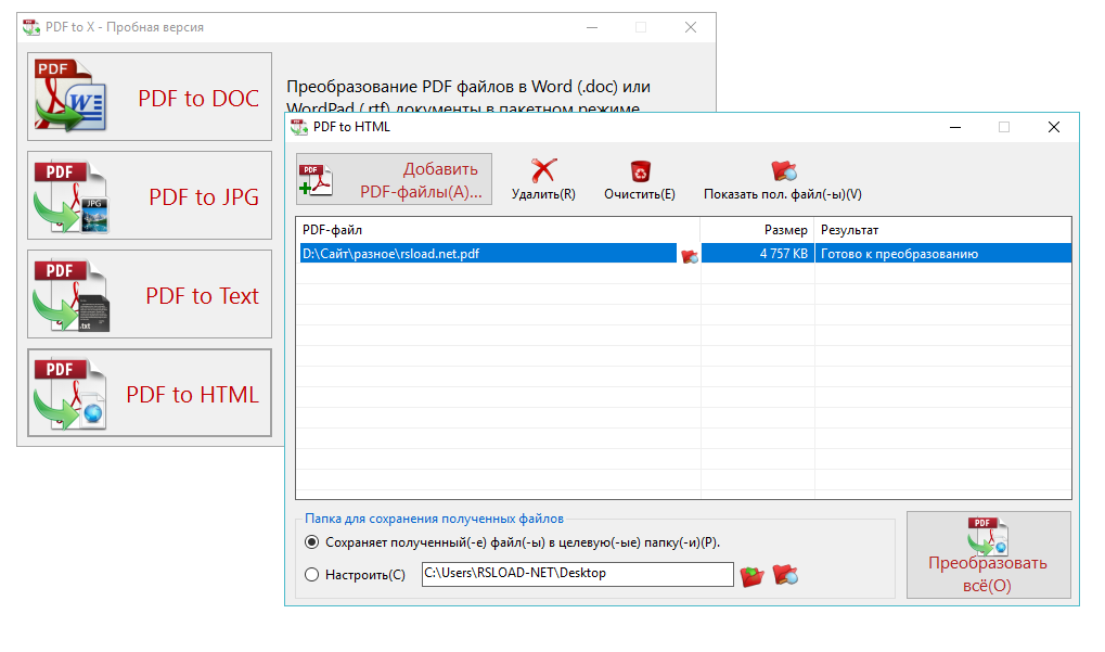 TriSun PDF to X 18.0 Build 074 — универсальный конвертер для преобразования PDF-документов в различные форматы, включая текстовые файлы, HTML, DOC и графические изображения. Программа поддерживает русский интерфейс, проста в использовании и не требует глубоких технических знаний. Подходит как для бытового использования, так и для работы с большими объемами документов.