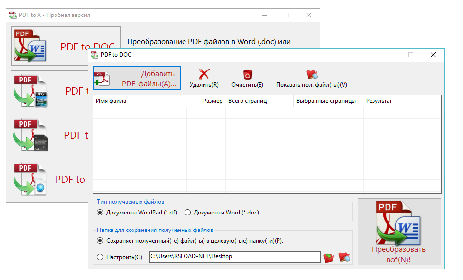 - Преобразование PDF в текстовые форматы, включая DOC и TXT