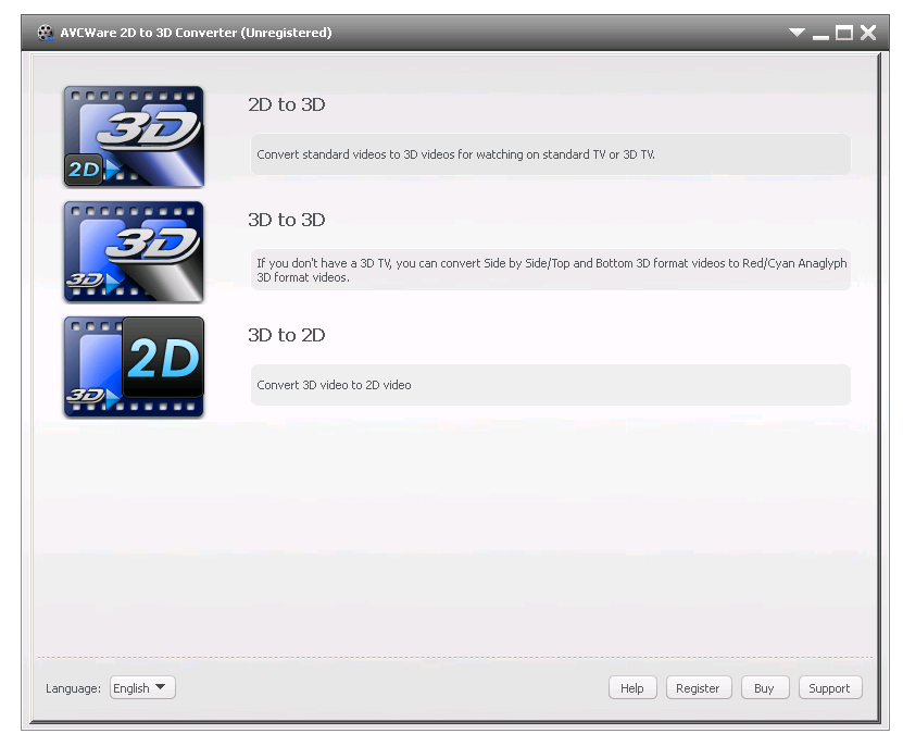 AVCWare 2D to 3D Converter разработана компанией AVCWare Studio и представляет собой простое в использовании приложение для конвертации видео между 2D и 3D форматами. Интерфейс программы интуитивно понятен, не требует глубоких знаний в области видеокодирования и подойдёт как домашним, так и начинающим профессиональным пользователям. С помощью данной утилиты можно легко преобразовать домашние фильмы, музыкальные клипы или любые другие видеозаписи в трёхмерный формат для просмотра на совместимых устройствах.