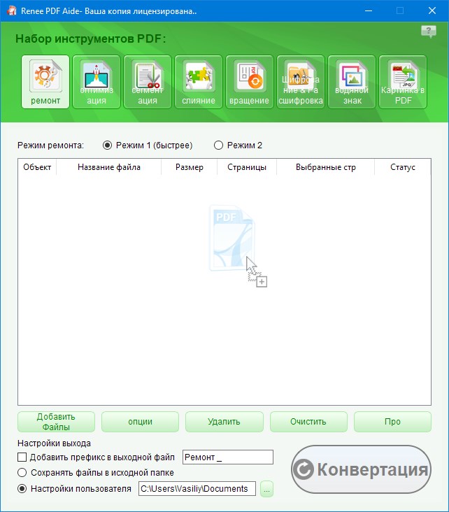 Использование Renee PDF Aide не требует глубоких технических знаний. После запуска приложения открывается интуитивно понятный интерфейс с поддержкой русского языка. Пользователь загружает PDF-файл, выбирает целевой формат и настраивает параметры, такие как диапазон страниц, качество изображений или уровень сжатия. При работе с отсканированными документами рекомендуется предварительно выбрать язык распознавания, чтобы повысить точность OCR. Готовый результат можно сохранить в нужной папке с сохранением структуры текста, шрифтов и форматирования. Программа также поддерживает пакетную обработку, что особенно удобно при работе с множеством файлов.