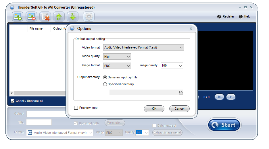 Работа с ThunderSoft GIF to AVI Converter