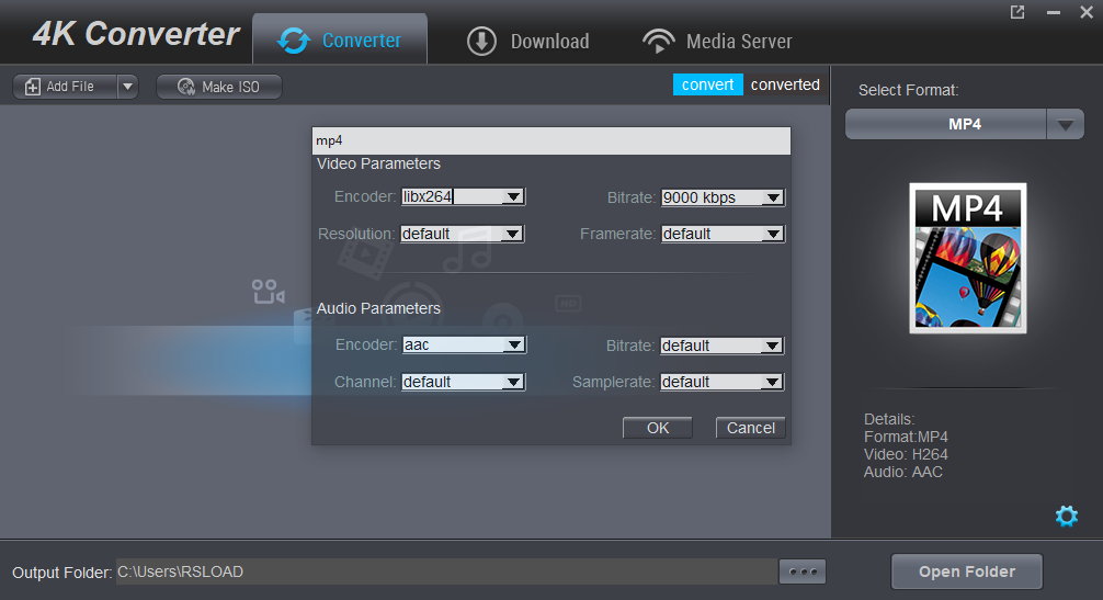 - Поддержка конвертации 4K видео в различные форматы с настройкой параметров