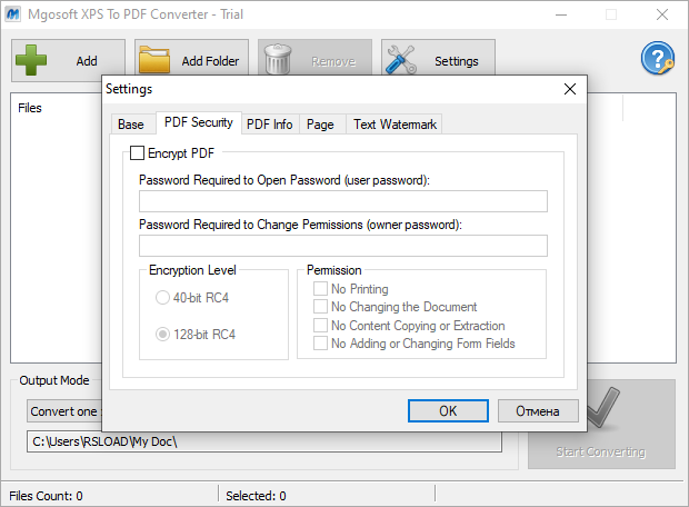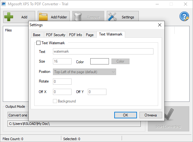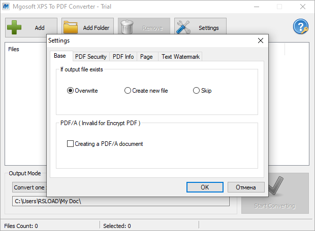 Работа с Mgosoft XPS To PDF