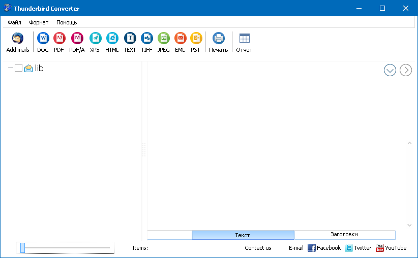 - Конвертация писем Thunderbird в PDF, DOC, HTML и другие форматы