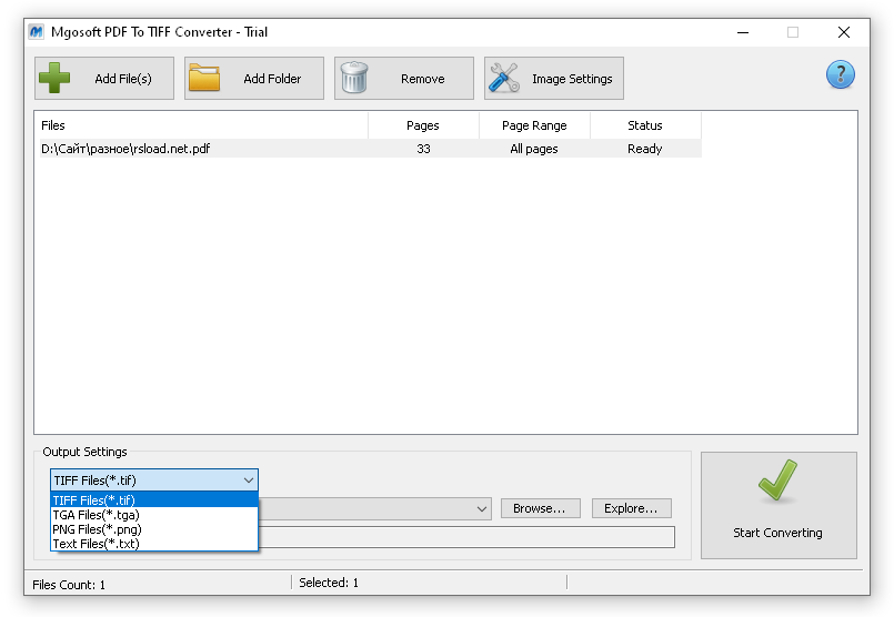 Mgosoft PDF To TIFF Converter 12.2.7 — это специализированное приложение для конвертации PDF-документов в растровые форматы, включая TIFF, PNG и TGA. Программа поддерживает пакетную обработку, настройку параметров изображений и сохранение структуры исходных файлов. Утилита ориентирована на пользователей, которым необходима высокая точность преобразования и контроль над выходным результатом.