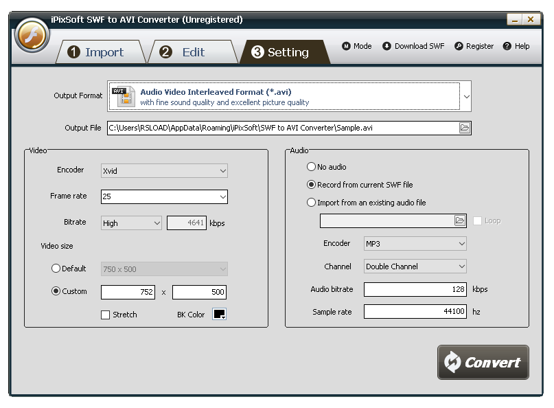 - Стабильная конвертация SWF в AVI с сохранением синхронизации