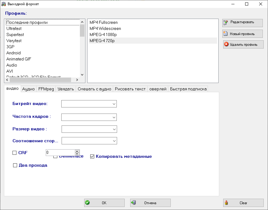 - Гибкие настройки кодирования и наличие редактируемых профилей