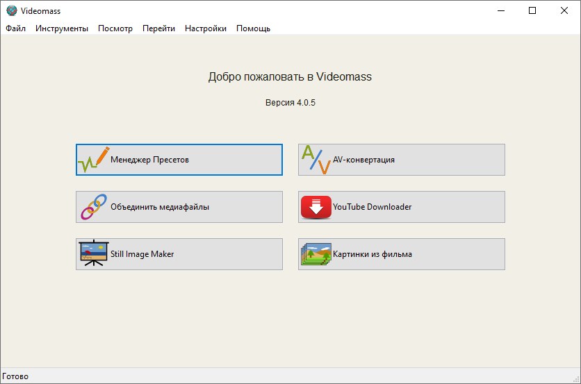 Работа с Videomass