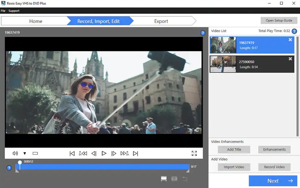 Roxio Easy VHS to DVD Plus 4.0.13 — это программное обеспечение для конвертации аналоговых видеозаписей с кассет VHS в цифровой формат или DVD. Программа позволяет импортировать видео с видеокамер, редактировать, улучшать качество, добавлять меню и главы, а также записывать результат на оптические диски. Она подходит для домашнего использования и помогает сохранить важные семейные воспоминания в современном виде.