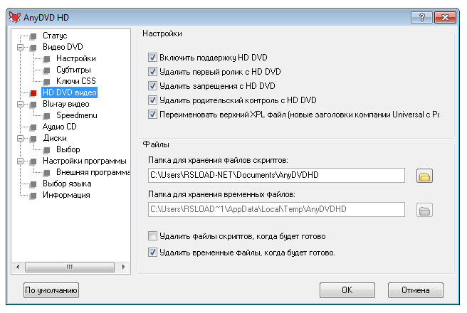 Работа с AnyDVD HD