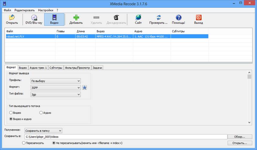 Работа с XMedia Recode
