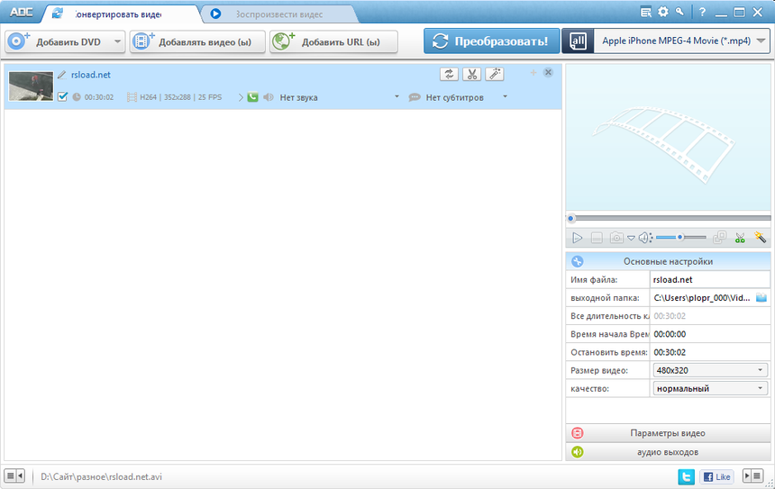 - Работа с форматами: MP4, AVI, WMV, MKV, FLV, MOV, VOB и другими