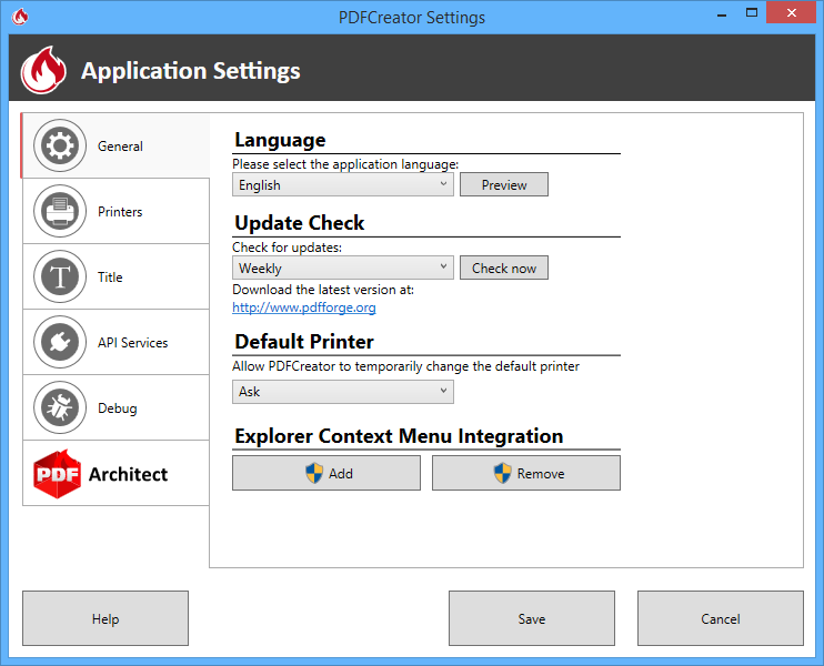 PDFCreator работает прозрачно для пользователя, используя стандартный механизм печати — достаточно выбрать вкладку «Печать» и указать PDFCreator как устройство вывода.