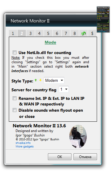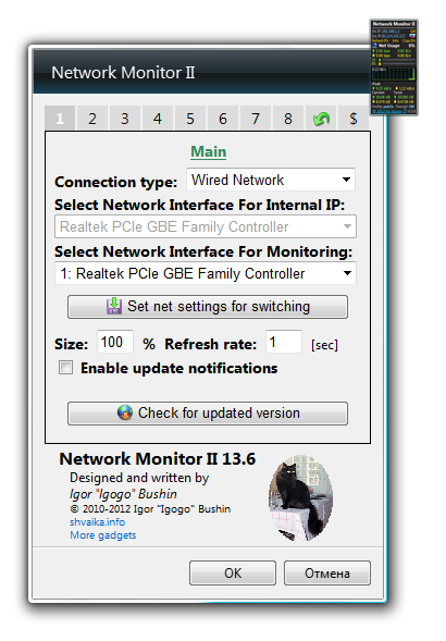 Запуск Network Monitor II 32.0 происходит мгновенно после извлечения из архива — никакой инсталляции не требуется. После старта программа появляется на рабочем столе в виде мини-окна, где отображаются все ключевые метрики. Пользователь может скопировать IP-адрес одним щелчком, обновить данные или изменить единицы измерения скорости. Гаджет автоматически адаптируется к активному сетевому интерфейсу и корректно отображает информацию даже при смене подключения. Настройки сохраняются между перезапусками, что обеспечивает комфортную работу с первого использования.