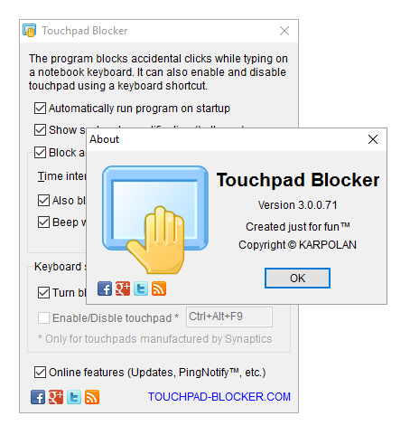 Touchpad Blocker – компактная и эффективная утилита, предназначенная для предотвращения случайных касаний тачпада во время ввода текста на клавиатуре. Программа идеально подойдёт пользователям ноутбуков и нетбуков, особенно в тех случаях, когда встроенные средства отключения тачпада недоступны или неудобны в использовании. Утилита работает в фоновом режиме и обеспечивает стабильное отключение чувствительной панели в нужный момент.