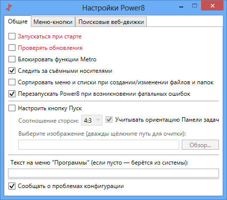 - Интерфейс легко настраивается, позволяя изменять внешний вид и поведение кнопки «Пуск» под личные предпочтения