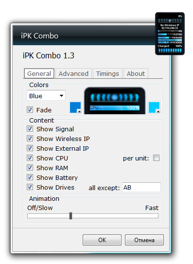 Утилита iPK Combo 1.3 отлично справляется с визуализацией системных данных без перегрузки ресурсов