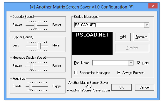 Работа с Another Matrix Screen Saver