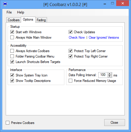 Coolbarz 1.2.0.0 — это компактное приложение, позволяющее вернуть на рабочий стол функциональную панель инструментов, похожую на ту, что была доступна в более ранних версиях Windows. Программа помогает быстро запускать часто используемые приложения, не ища их ярлыки среди множества файлов. Утилита поддерживает русский язык и совместима с современными версиями операционной системы.