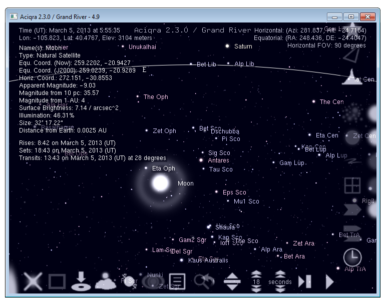 Программа Aciqra 2.3.3 функционирует как полноценный цифровой планетарий с возможностью моделирования небесных явлений