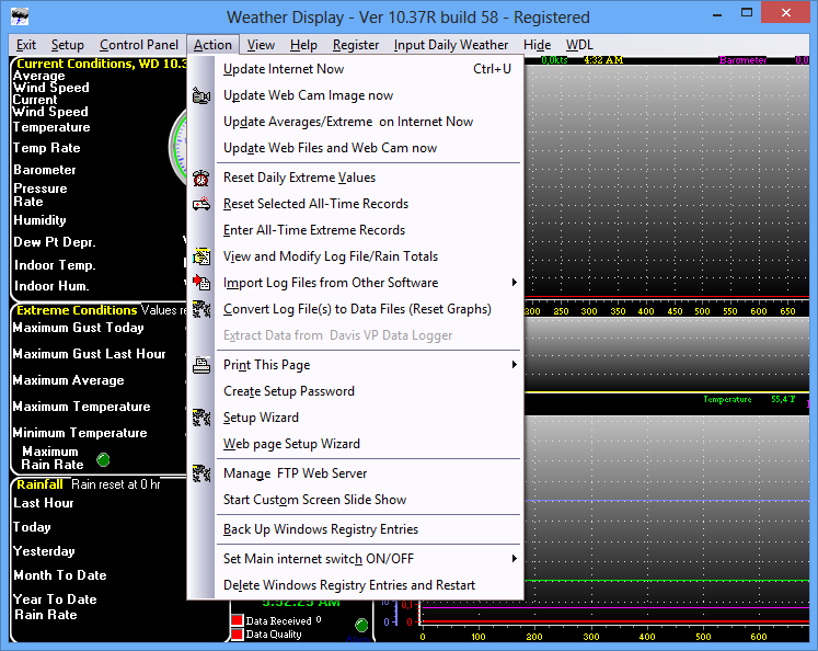 После установки Weather Display 10.37S Build 14, пользователь может настроить подключение к метеостанции или выбрать автоматический сбор данных с онлайн-серверов. Программа позволяет отображать погоду в нескольких городах одновременно, организуя данные в виде мини-окон или полноценных графиков. Интерес представляет встроенный редактор, с помощью которого можно изменять внешний вид графиков, карт и панелей отображения. Также доступна настройка оповещений — например, о резком изменении погоды или достижении критических значений температуры. Данные можно экспортировать в различные форматы, что удобно для анализа или ведения персональной метеобазы. Особое внимание уделено интеграции с электронной почтой: программа способна автоматически отправлять сводки и уведомления на заданный адрес. Благодаря встроенным инструментам обработки изображений, доступно отображение спутниковых снимков и радарных данных.