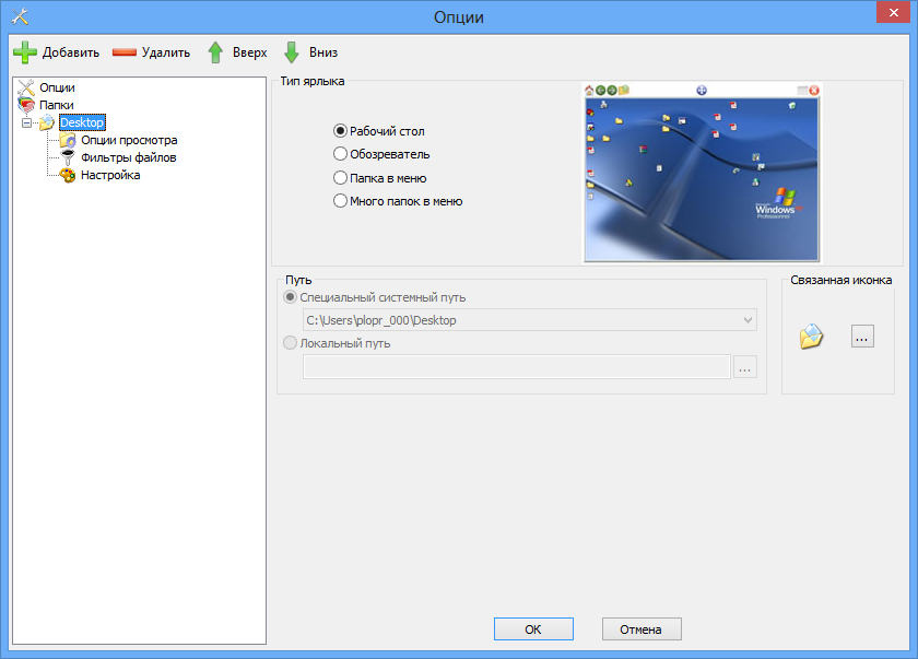 - Позволяет добавлять неограниченное количество ярлыков на папки с индивидуальными параметрами отображения
