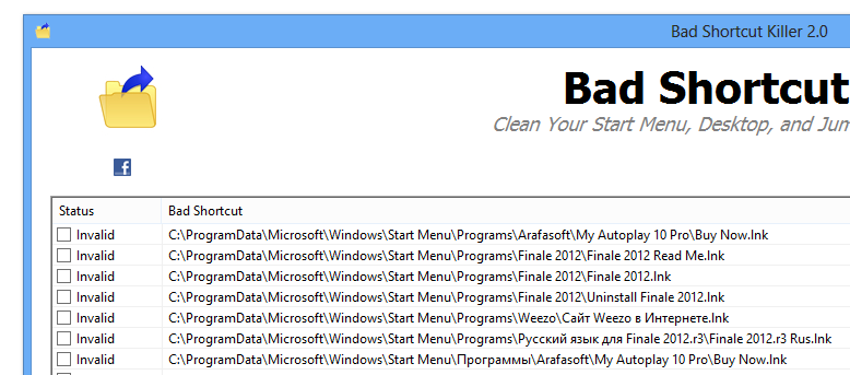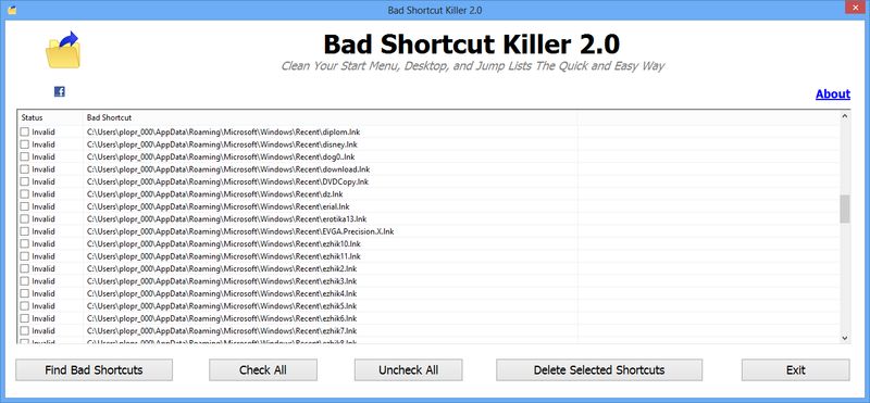 Bad Shortcut Killer 2.0 – это компактная и эффективная утилита для анализа и очистки системы от неработающих ярлыков на рабочем столе и в меню «Пуск». Программа быстро сканирует указанные области, выявляет повреждённые или устаревшие ярлыки и позволяет пользователю выбрать, какие из них следует удалить. Инструмент идеально подойдёт для тех, кто регулярно устанавливает и удаляет приложения, оставляя после себя множество «битых» ссылок.