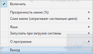 - Программа изменяет прозрачность контекстных и системных меню в Windows