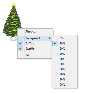 Небольшая и легкая программа Desktop Christmas Tree 1.8 украсит ваш рабочий стол яркой новогодней елкой, создавая праздничную атмосферу без лишней нагрузки на систему. Она идеально подойдет тем, кто хочет добавить немного рождественского настроения в повседневную работу за компьютером. Простая в использовании и полностью бесплатная утилита отлично вписывается в интерьер Windows.
