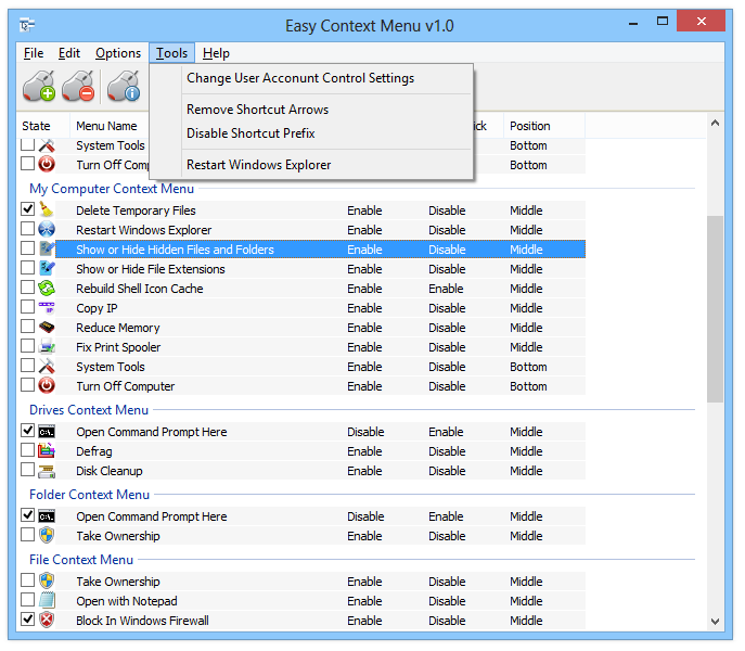 Easy Context Menu позволяет быстро настроить функционал, сократив количество действий при выполнении типовых задач в среде Windows.