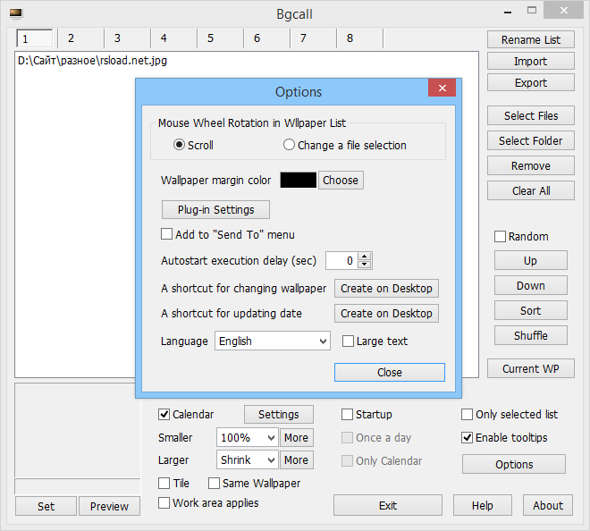Bgcall 2.6.8.0 x64 — портативная утилита для автоматической смены фона рабочего стола при запуске операционной системы. Программа поддерживает мультимониторные конфигурации, позволяет устанавливать индивидуальные изображения на каждый экран и накладывать поверх них календарь. Решение отлично подойдёт тем, кто ищет лёгкий и функциональный инструмент без необходимости использования встроенных настроек Windows.