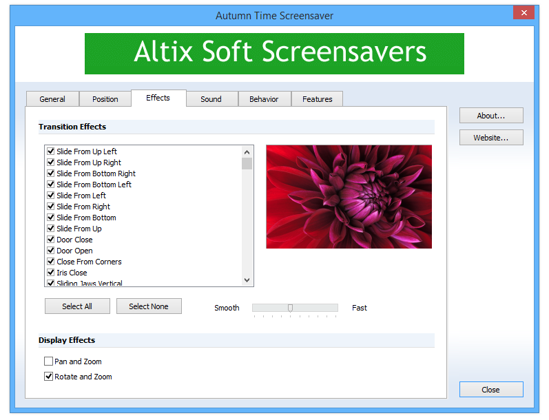 Autumn Time Screensaver разработана компанией Altix Soft и представляет собой визуальное сопровождение в стиле поздней осени. Каждый кадр заставки демонстрирует тщательно подобранные изображения: опавшие листья, осенние дорожки, туман над озёрами, горные леса и закаты с тёплыми оттенками. Программа поддерживает смену изображений в автоматическом режиме, создавая эффект слайд-шоу на экране монитора. Плавные переходы и высокое качество графики делают просмотр особенно приятным.
