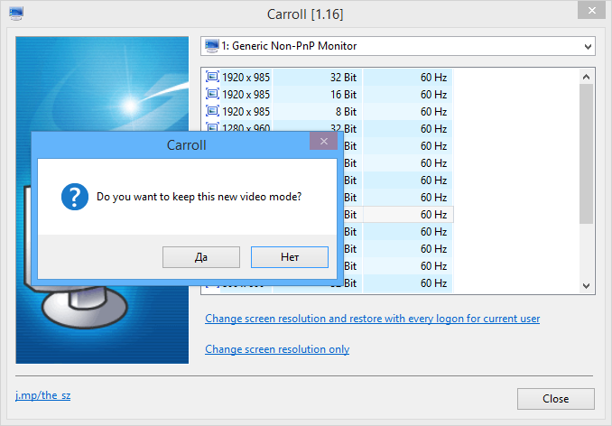 - Утилита Carroll позволяет выставить нужное разрешение экрана без необходимости ручного поиска в системных настройках Windows.
