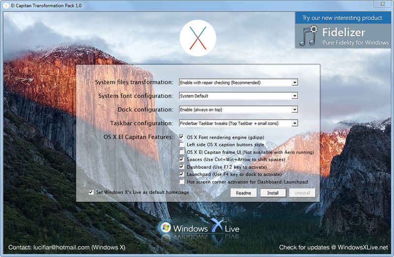 - Полноценная визуальная трансформация Windows под macOS El Capitan