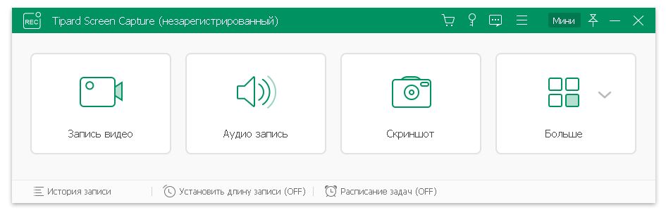 - Возможность записи как полноэкранного режима, так и пользовательской области