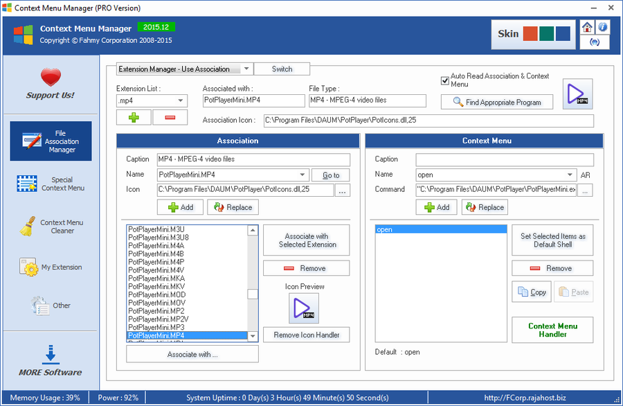 - Позволяет управлять содержимым контекстного меню для файлов, папок и дисков