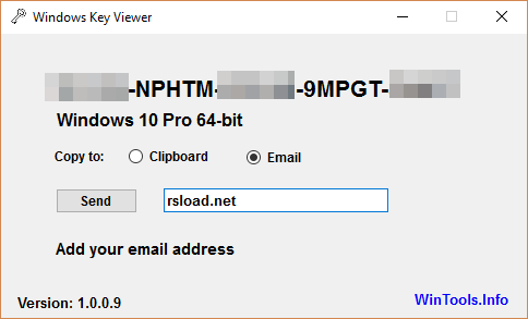 Использование утилиты предельно простое: после запуска исполняемого файла открывается небольшое окно, в котором отображается цифробуквенный код ключа. Пользователь может выделить ключ вручную и скопировать его, либо нажать соответствующую кнопку для автоматического копирования в буфер обмена. Для отправки на email требуется активировать опцию «Email», ввести адрес получателя и нажать «Send». Утилита также показывает версию Windows и разрядность ОС, что может быть полезно при переустановке или диагностике системы. Интерфейс интуитивно понятен и не требует изучения инструкций.