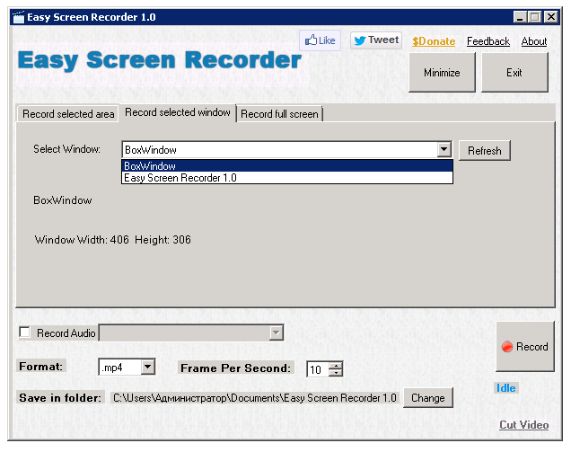 - Поддержка форматов MP4, SWF и GIF для сохранения записей