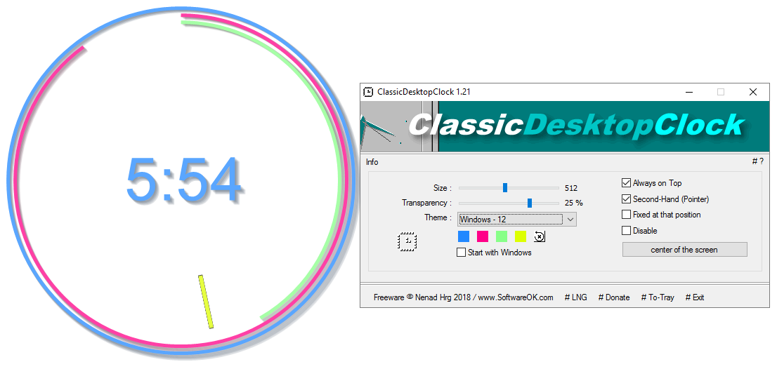 ClassicDesktopClock 5.15 — это лёгкая и функциональная утилита, отображающая классические часы на рабочем столе ПК. Программа имитирует внешний вид часов из старых версий Windows, включая стили Windows 98, XP, 7, 10 и новее. Поддержка портативного запуска и минимальные требования к системе делают её удобным решением для пользователей, ценящих как ностальгию, так и практичность.